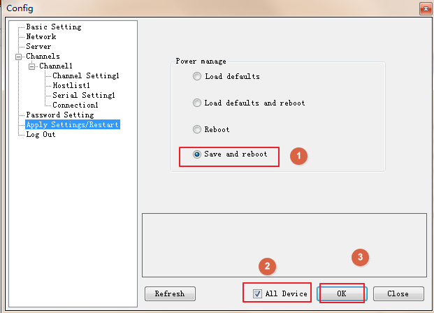 3、如果您需要将当前菜单项页面参数复制到同型号版本的其它设备,需勾选“All Device”,请按照下图,将Serial Settings1菜单项页面所有参数同步复制到其它所有相同型号版本设备。